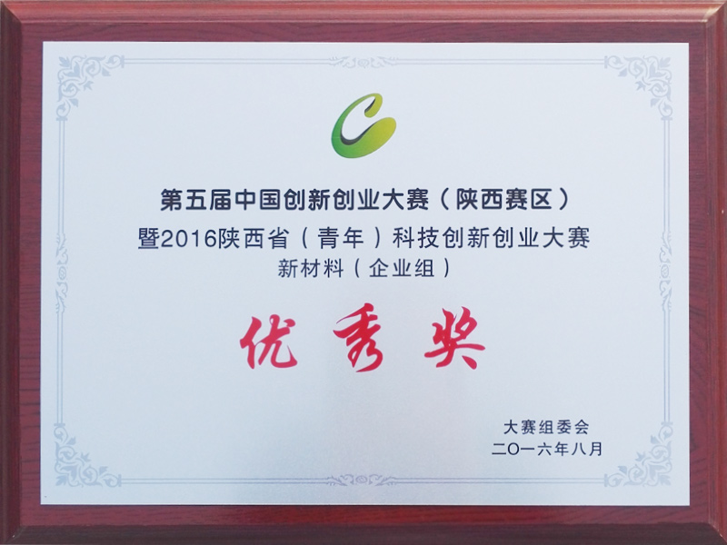 2016年8月,寶雞志普有色金屬加工有限公司榮獲第五屆中國創(chuàng)新創(chuàng)業(yè)大賽(陜西賽區(qū))暨2016陜西。ㄇ嗄辏┛萍紕(chuàng)新創(chuàng)業(yè)大賽新材料(企業(yè)組)優(yōu)秀獎(jiǎng)并頒發(fā)證書。
