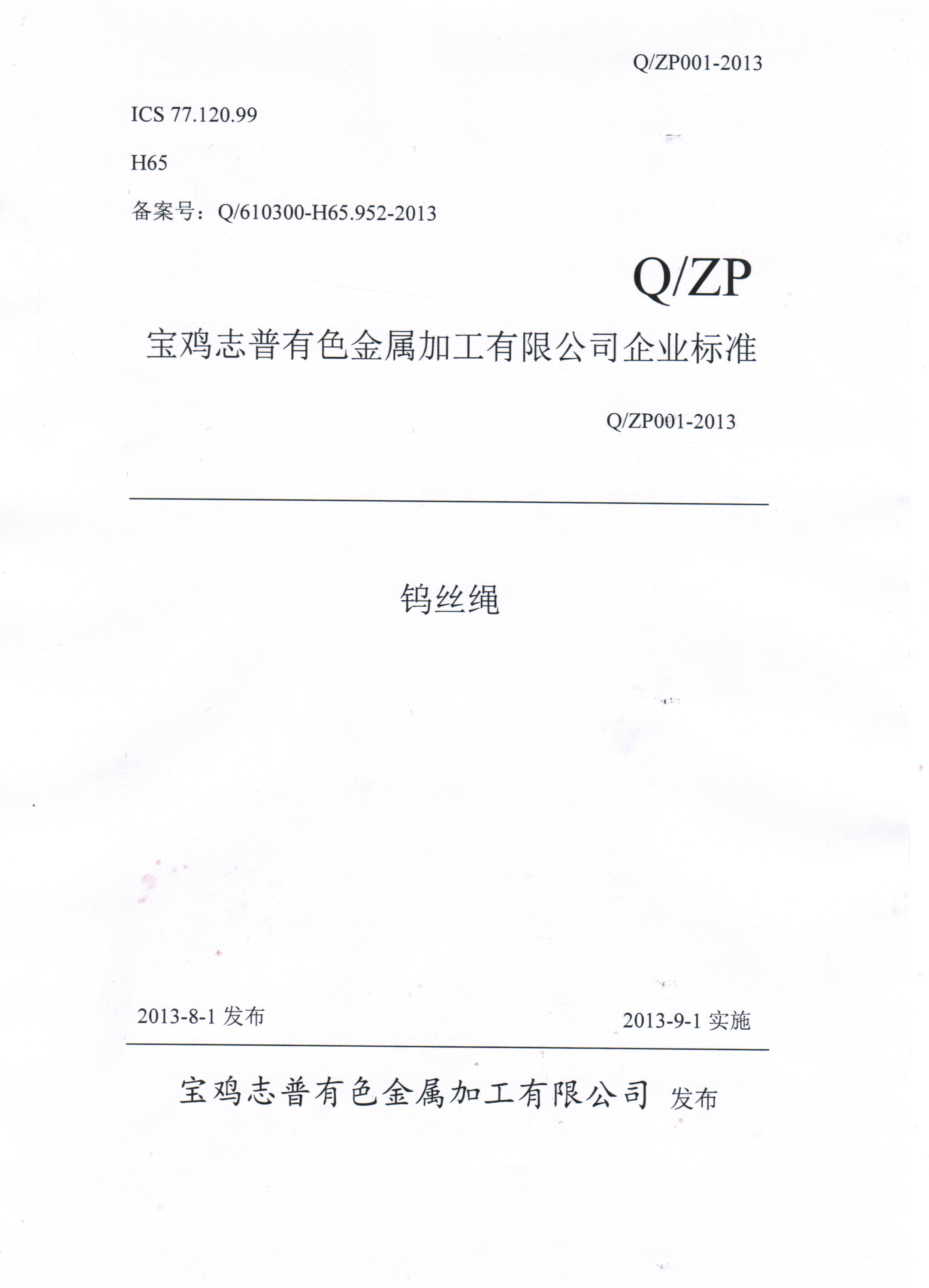 志普鎢絲繩企業(yè)標準